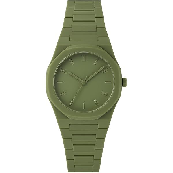 Key Features: Distinctive Numerals: The dial features prominent Eastern Arabic numerals (also known as Indian numerals), offering a unique and sophisticated look that stands out from traditional Western-style watches. Modern Case Design: The watch has a contemporary octagonal bezel reminiscent of iconic luxury sport watches, giving it a sharp, geometric profile. Minimalist Dial: The green dial is clean and uncluttered, bearing the brand name "EMPIRO" and a small crown logo at the 12 o'clock position. Comfortable Strap: The link-style strap is made of a matte, durable silicone or resin material, ensuring comfort and resilience for daily wear.